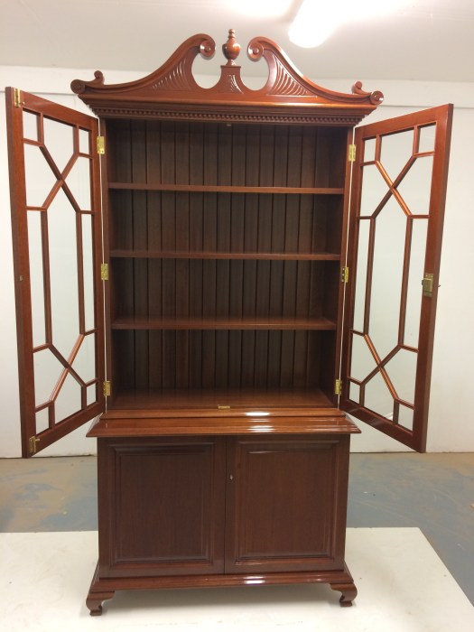 Posted on May 13, 2019 by fitzgeraldjoineryCabinet Mahogany cabinet with thirteen pane glass doors with hand carved pediment Share this:TweetMore Email a link to a friend (Opens in new window) Email Like Loading... Related